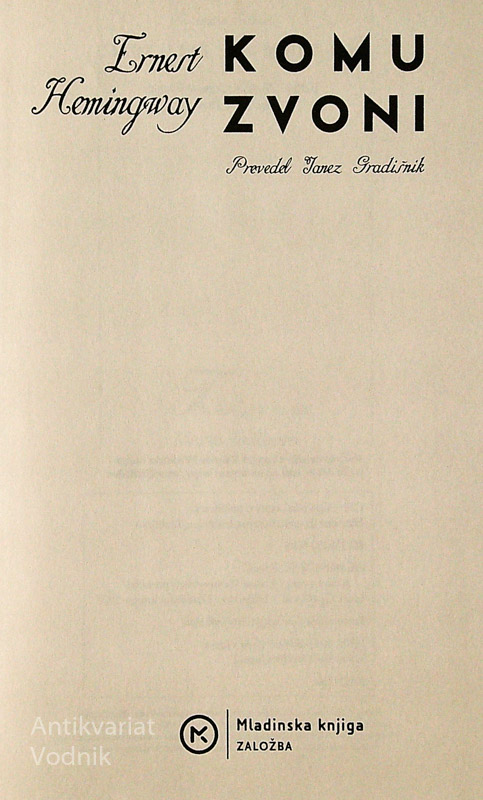 KOMU ZVONI, Ernest Hemingway