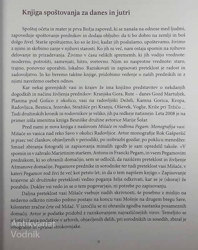 MIŠAČE IN RODBINA PEGAM; MONOGRAFIJA VASI, Rok Gašperšič