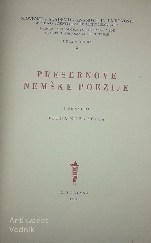 PREŠERNOVE NEMŠKE POEZIJE količina