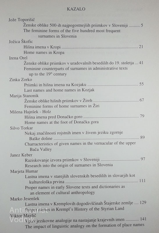 SIMPOZIJ; SLOVENSKA LASTNOIMENSKOST, več avtorjev